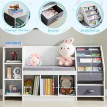 This multifunctional reading nook is perfect for nurseries, playrooms, bedrooms, or any space where kids love to read, play, and imagine. It’s the ideal way to foster a love for books and creativity while keeping everything organized. Whether your child loves comics, picture books, or art projects, this bookcase has space for it all – making it easy to access and keep things tidy. The spacious cushioned bench allows for comfortable reading sessions and sharing stories, making it a cozy place for siblings or friends to sit together and enjoy their favorite books. It’s not just a bookcase; it’s a creative, fun, and organized environment for your little one.